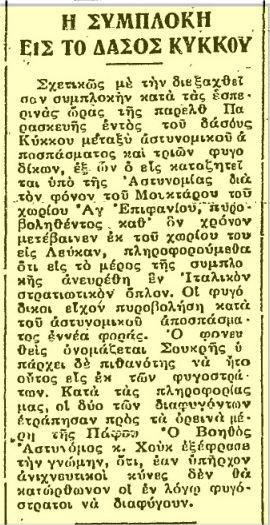 Όμως η αστυνομία δεν σταμάτησε να προσπαθεί να συλλάβει τον Μίτα αλλά και τους άλλους φυγόδικους. Τον Οκτώβρη του 1942, αστυνομική δύναμη με 8 αστυνομικούς αλλά και 60 Ινδούς στρατιώτες είχαν πληροφορίες ότι θα έβρισκαν τον Μίτα στον Άγιο Νικόλαο της Πάφου. Όμως και αυτή η επιχείρηση της αστυνομίας δεν είχε επιτυχία.
