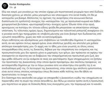 Μπορεί η ίδια να μην τον κατονόμασε στις δηλώσεις που έκανε τις προηγούμενες ημέρες το γεγονός ωστόσο ότι το όνομά του είχε πλέον αρχίσει να κυκλοφορεί στα δημοσιογραφικά γραφεία και τα καλλιτεχνικά πηγαδάκια τον οδήγησε στην απόφαση, «για λόγους ευθύτητας και αξιοπρέπειας», όπως αναφέρει, να τοποθετηθεί δημόσια μέσα από μια ανάρτηση που έκανε, αργά χθες το βράδυ, στην προσωπική του σελίδα στο Facebook.