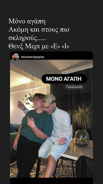 “Ήταν μια συνάντηση σύντομη, αλλά περάσαμε ένα πολύ ωραίο τρίωρο μαζί. Είπαμε πολύ ωραία πράγματα, αλήθειες. Όχι μόνο για αυτό που συνέβη αλλά γενικά για όλα όσα γίνονται στην κοινωνία μας. Νιώθω πολύ ανακουφισμένος που συναντηθήκαμε από κοντά. Ακόμα και για το όνομά της μου μίλησαν άσχημα, επειδή το έγραψα με “Ε”. Ό,τι και να πεις όπως και να το πεις θα κριθεί. Δεν χρειάστηκε να πω ξανά συγγνώμη. Έχει ειπωθεί εδώ και μέρες από μηνύματα. Ήρθε ξεκάθαρα να γνωριστούμε. Όλα στη ζωή συμβαίνουν για κάποιον λόγο. Η συγγνώμη δεν χρειάζεται να είναι μόνο λόγια” είπε αρχικά για τη συνάντησή τους.