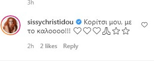 Ανάμεσα σ’ αυτούς που σχολίασαν την δημοσίευση, ήταν και η Σίσσυ Χρηστίδου, η οποία είναι καλή της φίλη και πρώην συνεργάτιδα.