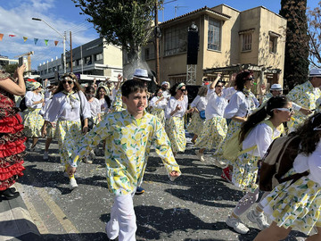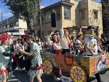 Με σύμμαχο τον καιρό και με ανεβασμένη διάθεση, χιλιάδες κόσμου συμμετέχουν στην μεγάλη παρέλαση, όπου ξεχωρίζουν τα εντυπωσιακά άρματα, οι πολύχρωμες στολές και το γλέντι.