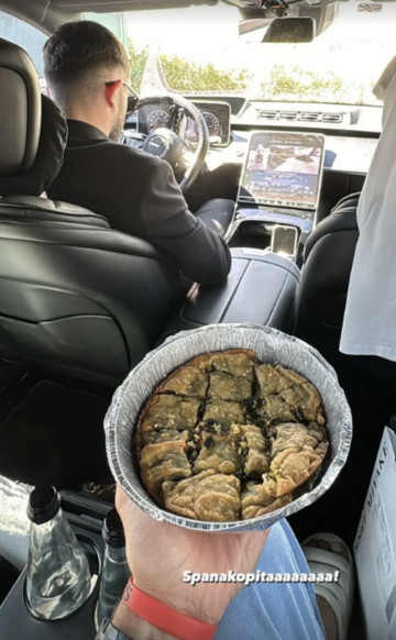 Μέσω Instagram, η Αθηνά Οικονομάκου ανέβασε μερικά δικά της στιγμιότυπα από το μπάνιο και το φαγητό που απόλαυσε σε ξενοδοχείο. Από το δικό του προφίλ, ο Τσερέλα ανέβασε αρχικά μια φωτογραφία του μέσα στο αυτοκίνητο που ταξιδεύει με προορισμό το νησί, στην οποία αποθεώνει ένα κομμάτι σπανακόπιτα. Ακόμη, απαθανατίστηκε να απολαμβάνει τη θέα από την πισίνα του ξενοδοχείου, ενώ μόλις έχει βγει από το νερό και τυλίγει μια πετσέτα γύρω από το σώμα του.