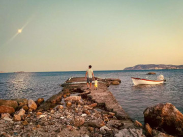 Στη νέα του ανάρτηση, ο Ορφέας Αυγουστίδης κρατά από το χέρι τον 2,5 ετών γιο του, Αχιλλέα σε μια χαλαρή βόλτα στην παραλία.