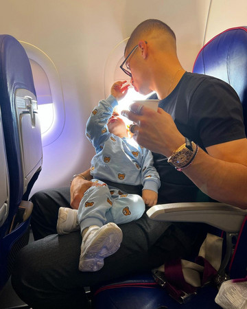 Η ίδια έβγαλε φωτογραφία τους άντρες της ζωής της σε μια ξεχωριστή στιγμή εν ώρα πτήσης. Τα παιχνίδια μέσα στο αεροπλάνο κέντρισαν το ενδιαφέρον της ραδιοφωνικής παραγωγού και απαθανάτισε την στιγμή.