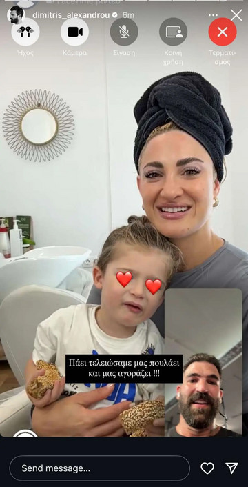 Στο Instagram, ο Δημήτρης μοιράστηκε ένα τρυφερό στιγμιότυπο, συνοδευόμενο από το χιουμοριστικό σχόλιο: «Πάει, τελειώσαμε, μας πουλάει και μας αγοράζει», αποτυπώνοντας την αυθόρμητη αθωότητα και ζωντάνια του παιδιού τους.