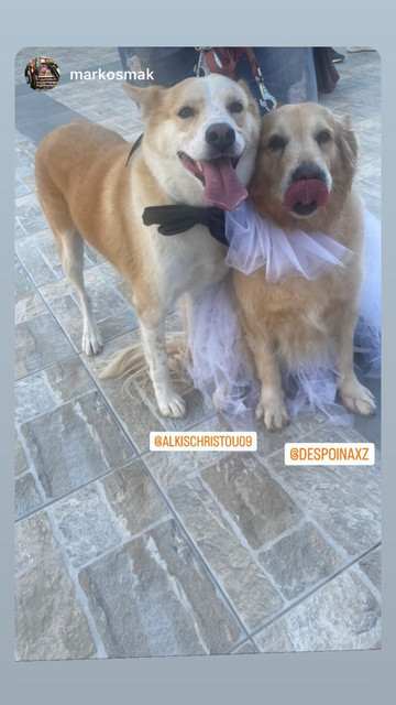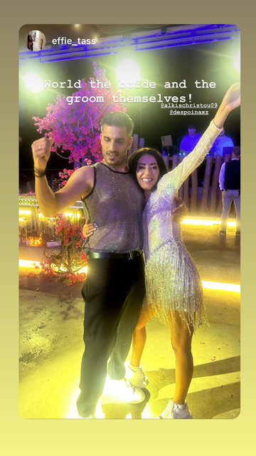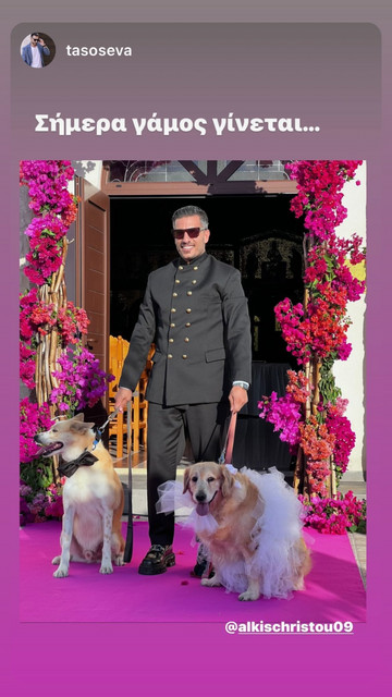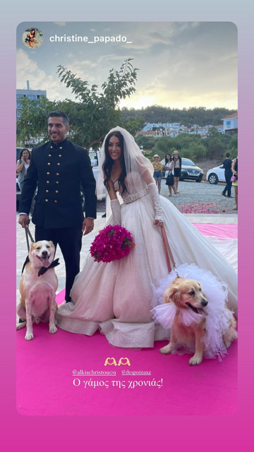 Ο Άλκης Χρήστου περίμενε την αγαπημένη του με τα δύο τους σκυλάκια, ενθουσιάζοντας τους καλεσμένους ενώ πόζαραν μαζί λίγο πριν μπουν στην εκκλησία. Στο γλέντι που ακολούθησε σε γνωστό παραλιακό μαγαζί της Αγίας Νάπας, οι νέονυμφοι χόρεψαν τον πρώτο τους χορό ενώ ακολούθησε και ένα εντυπωσιακό χορευτικό.