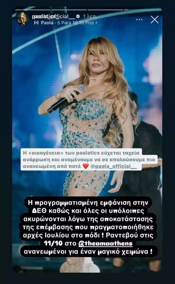 Με μια ανακοίνωση σε όλους της τους λογαριασμούς στα social media, η Πάολα ενημέρωσε τους ακόλουθους και θαυμαστές της για την ακύρωση όλων των προγραμματισμένων της εμφανίσεων.