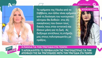 Άτομο του περιβάλλοντος της Πάολα μίλησε στην εκπομπή Super Κατερίνα και δήλωσε «Τα χρήματα της Πάολα από το Σάββατο, συν άλλα τόσα χρήματα από τη διοίκηση του νυχτερινού κέντρου, θα δοθούν στις έξι οικογένειες που έχουν τους δικούς τους στην εντατική και δίνουν μάχη για τη ζωή. Ας δείξουμε επιτέλους τη στήριξή μας στους πολυτραυματίες με πράξεις».