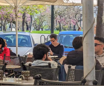 Ο ίδιος εθεάθη στο πιο γνωστό καφέ του νησιού στην περιοχή Λιστόν με casual look, κατά την διάρκεια των διακοπών του, χωρίς τα παιδιά του και τη γυναίκα του.