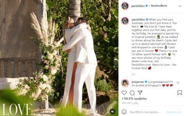 Το σκηνικό μαγευτικό. Η Paris Hilton διηγήθηκε μέσω της λεζάντας της φωτογραφίας τον τρόπο με τον οποίο ο μέλλοντας σύζυγος της, της έκανε την πρόταση γάμου.