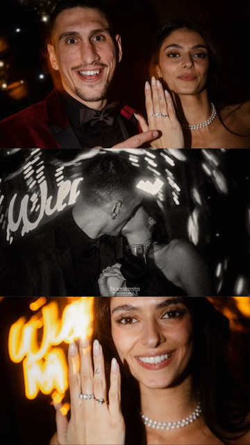 Σε ένα εντυπωσιακό σκηνικό, διακοσμημένο με μαύρα και χρυσά μπαλόνια, ο μπασκετμπολίστας γονάτισε μπροστά της και της πρόσφερε το μονόπετρο, ζητώντας της να γίνει γυναίκα του. Η στιγμή ήταν φορτισμένη με συγκίνηση, με τη μέλλουσα νύφη να λέει το πολυπόθητο «I do», μέσα σε θερμά χειροκροτήματα και χαμόγελα.
