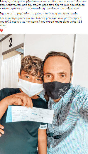 Και είμαι περήφανος για τον Ανδρέα μου, όχι μόνο για την πράξη του αλλά κυρίως για την κριτική του σκέψη και ας είναι μόλις 12.5 ετών.”