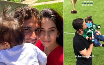 Η ίδια μοιράστηκε φωτογραφίες μέσα από τον προσωπικό της λογαριασμό στο Instagram, ενώ απαθανάτισε τον αγαπημένο της να πανηγυρίζει στο γήπεδο για πρώτη φορά αγκαλιά με τον γιο του.