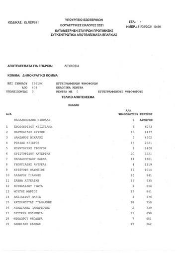 Τους σταυρούς προτίμησης των υποψηφίων Βουλευτών στις επαρχίες έδωσε στην δημοσιότητα το πρωί της Δευτέρας ο Γενικός Έφορος Εκλογών.