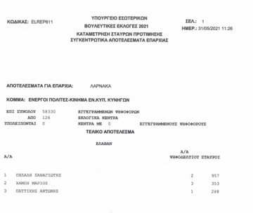 Στην επαρχία Λάρνακας, ο Πανίκος Πιλάλης “κατέβαινε” με το κόμμα “Ενεργοί Πολίτες – Κίνημα Κυπρίων Κυνηγών” και βγήκε πρώτος από τον συνδυασμό του με 957 σταυρούς.