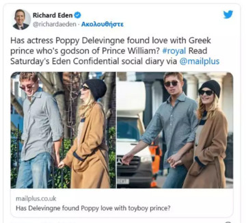 Μάλιστα, όπως αναφέρουν τα διεθνή media ο 24χρονος εγγονός του τέως βασιλιά Κωνσταντίνου διατηρεί σχέση με την… 36χρονη Poppy Delevingne. Ο Κωνσταντίνος Αλέξιος και η αδερφή του διάσημου μοντέλου Cara Delevingne φαίνεται ότι ζουν ένα τρυφερό ειδύλλιο.