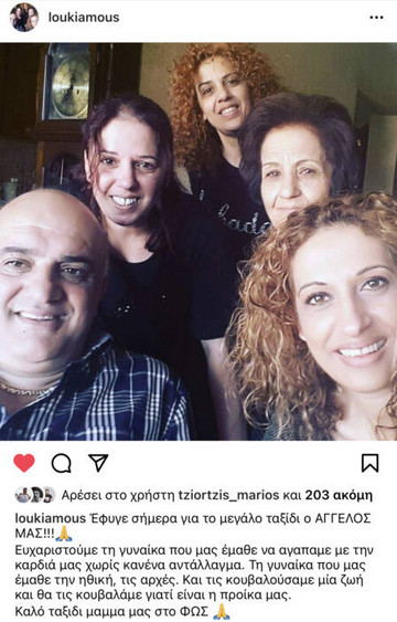 “Έφυγε σήμερα για το μεγάλο ταξίδι ο ΑΓΓΕΛΟΣ ΜΑΣ!!!🙏 Ευχαριστούμε τη γυναίκα που μας έμαθε να αγαπαμε με την καρδιά μας χωρίς κανένα αντάλλαγμα. Τη γυναίκα που μας έμαθε την ηθική, τις αρχές. Και τις κουβαλούσαμε μία ζωή και θα τις κουβαλάμε γιατί είναι η προίκα μας.