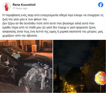 Η δημοσιογράφος έγραψε χαρακτηριστικά: «Η παραβίαση ενός STOP από επαγγελματία οδηγό λίγο έλειψε να στοιχήσει τη ζωή του γιου μου και των φίλων του. Δεν ξέρω αν θα συνέλθω ποτέ από αυτό που βιώσαμε, αλλά αυτό που έμαθα είναι πως ένα λεπτό ή μερικά εκατοστά μας χωρίζουν από την άβυσσο».