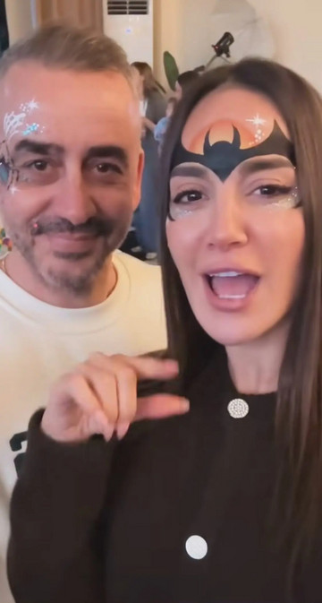 Η Ρία Ελληνίδου άφησε λοιπόν και εκείνη με την σειρά της τους διοργανωτές της βραδιάς να ζωγραφίσουν στο μέτωπό της το χαρακτηριστικό σήμα της αράχνης – όπως βλέπετε και στην φωτογραφία και πόζαρε μαζί με τον επιχειρηματία Κώστα Σιδεράτο, κολλητό φίλο του Δημήτρη Αλεξάνδρου που επίσης ήταν παρόν στην φοβερή βραδιά.