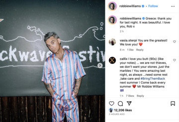 Το πρωί της Κυριακής, ο Robbie Williams έκανε μια ανάρτηση στον προσωπικό του λογαριασμό στο Instagram μετά την επική συνάντησή του με το ελληνικό κοινό.