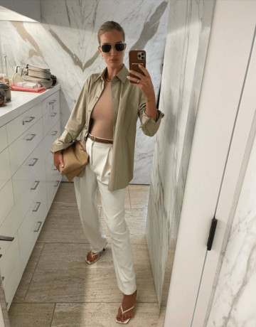 Το διάσημο μοντέλο δημοσίευσε μερικές φωτογραφίες με τα fashion looks της στον προσωπικό της λογαριασμό στο Instagram και στην τελευταία, ποζάρει με κρατώντας τη φουσκωμένη κοιλίτσα της.