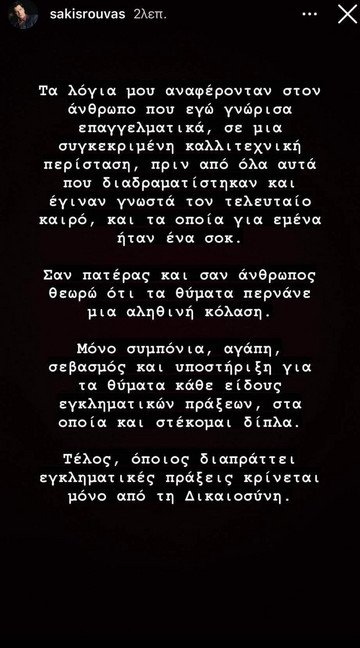 Οι δηλώσεις του προκάλεσαν έντονες αντιδράσεις με αποτέλεσμα ο ίδιος λίγες ώρες αργότερα να κάνει μια ανάρτηση στον προσωπικό του λογαριασμό στο Instagram.