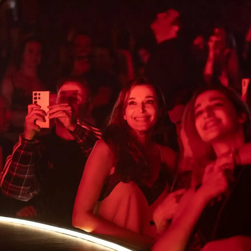 Η αγαπημένη του σύζυγος, Κάτια Ζυγούλη, βρισκόταν επίσης στο κοινό, απολαμβάνοντας τη μαγευτική ατμόσφαιρα και θαυμάζοντας τον άντρα της επί σκηνής.