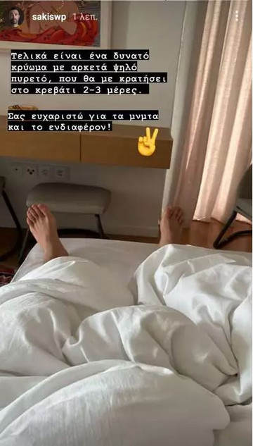 «Τελικά είναι ένα δυνατό κρύωμα με αρκετά ψηλό πυρετό, που θα με κρατήσει στο κρεβάτι 2-3 μέρες. Σας ευχαριστώ για τα μηνύματα και το ενδιαφέρον» έγραψε οΣάκης Τανιμανίδης
