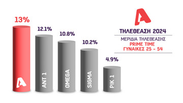 Ο Alpha επικράτησε στο prime time στο σύνολο πληθυσμού και στα δυναμικά κοινά σε ηλικίες 18-54 αλλά καθώς και στο πιο ειδικό, γυναικείο δυναμικό κοινό 25-54, τα οποία θεωρούνται τα αγοραστικά κοινά.