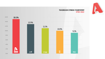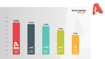 Αναλυτικά, τα μηχανάκια έπαθαν Alpha – Alpha πανικό κατά την διάρκεια της χρονιάς και έδειχναν στην πρώτη θέση μόνο τον Alpha Κύπρου. Το σύνολο του πληθυσμού προτίμησε Alpha με αποτέλεσμα να είναι πρώτος με 15.1% για όλο το 2022, αφήνοντας το δεύτερο κανάλι πίσω με ποσοστό 12,9%, δείχνοντας την άνετη πρωτιά του και την διαχρονική επιλογή του κόσμου. Υψηλά νούμερα τηλεθέασης και στο νεανικό κοινό αλλά και στο γυναικείο σκαρφαλώνοντας στο 15.4%