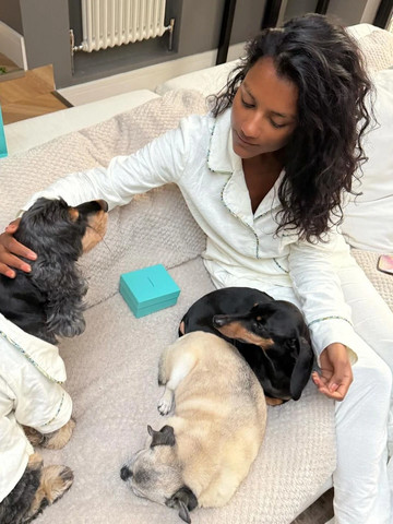 Μην ανησυχείτε, αν νομίζατε ότι η Simone περιορίζεται μόνο στις εντυπωσιακές εμφανίσεις για την εορταστική περίοδο. Απέδειξε επίσης ότι είναι σαν κι εμάς όταν πρόκειται για χαλάρωση στο σπίτι. Στη γιορτινή συλλογή φωτογραφιών της περιλαμβανόταν και μια εικόνα με την ίδια και τα τρία σκυλάκια της, φορώντας ένα ονειρεμένο σετ λευκών, ασορτί πιτζαμών.