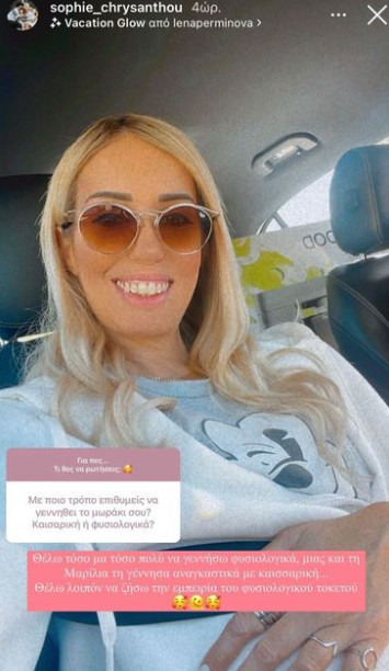 Συγκεκριμένα, η Κύπρια δημοσιογράφος «Tέλος του Γενάρη» αποκαλύπτοντας έτσι ότι βρίσκεται στον 8ο μήνα της εγκυμοσύνης της ενώ σχετικά με το τρόπο που επιθυμεί να φέρει στον κόσμο το παιδί της, η ίδια απάντησε: «Θέλω τόσο μα τόσο πολύ να γεννήσω φυσιολογικά μιας και τη Μαρίλια τη γέννησα αναγκαστικά με καισαρική. Θέλω να ζήσω την εμπειρία του φυσιολογικού τοκετού».