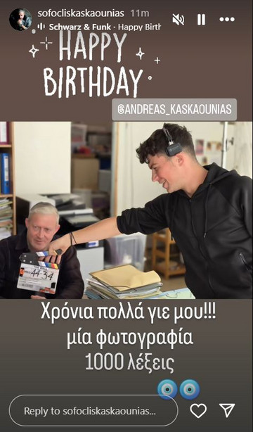 Στη λεζάντα, έγραψε: «Χρόνια Πολλά γιε μου!! Μια φωτογραφία, 1000 λέξεις», συνοδεύοντας το στιγμιότυπο από τα γυρίσματα σειράς στην οποία συμμετείχε ο Ανδρέας.
