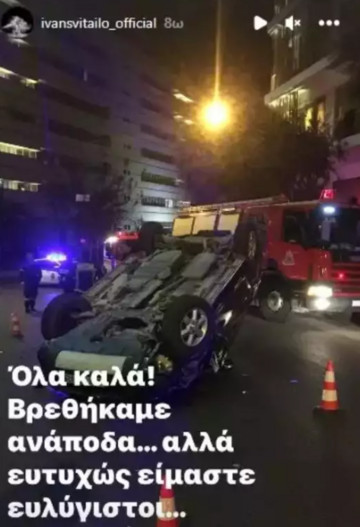 Το τροχαίο έκανε γνωστό ο ίδιος ο ηθοποιός Ιβάν Σβιτάιλο, ο οποίος δημοσίευσε σε story φωτογραφία που δείχνει το αναποδογυρισμένο αυτοκίνητο του. «Όλα καλά! Βρεθήκαμε ανάποδα αλλά ευτυχώς είμαστε ευλύγιστοι» έγραψε στο Instagram.