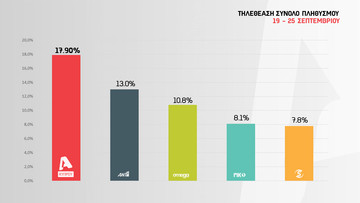 Δείτε τον ενδεικτικό πίνακα με τις αναλύσεις για την εβδομάδα 19-25 Σεπτεμβρίου σε γενικό σύνολο, δυναμικό κοινό αλλά και γυναικείο.