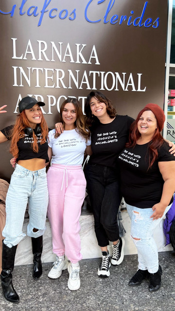 Μάλιστα, οι γνωστές Κύπριες φόρεσαν και matchy-matchy t-shirts που αναγράφουν ”The one with Jokonda’s bachelorette” ενώ η προσεχώς νυφούλα, Ιωάννα Λαμπροπούλου φορούσε t-shirt που είχε την φράση ”The one with my bachelorette in London”. Με αυτό τον τρόπο, μάθαμε ότι οι αγαπημένες φίλες θα ταξιδέψουν μέχρι το Λονδίνο για το bachelorette της Ιωάννας Λαμπροπούλου.