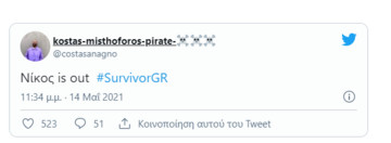 Ένα νέο spoiler ήρθε να προστεθεί από τον Κώστα Αναγνωστόπουλο στο Twitter, ο οποίος παρακολουθεί στενά τις εξελίξεις στο ριάλιτι. Ο πρώην Survivor αναφέρει: «Νίκος is out».