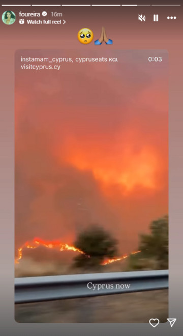 Σε ένα από τα stories της, η δημοφιλής τραγουδίστρια ανάρτησε τη φράση: «Προσευχηθείτε για την Κύπρο», δείχνοντας έτσι τη βαθιά της συγκίνηση και στήριξη.
