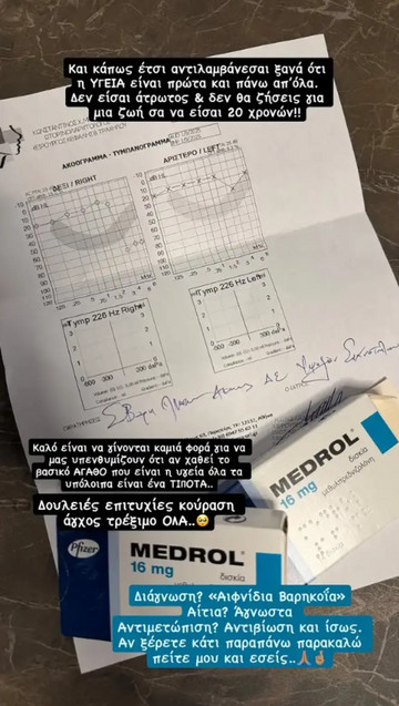 Στη συνέχεια, συμπλήρωσε: «Διάγνωση; “Αιφνίδια βαρηκοΐα”. Αίτια; Άγνωστα. Αντιμετώπιση; Αντιβίωση και ίσως. Αν ξέρετε κάτι παραπάνω παρακαλώ πείτε μου και εσείς».