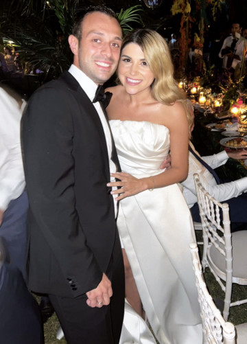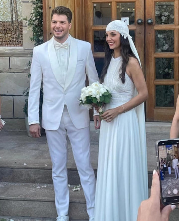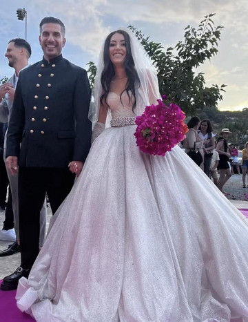 Η νύφη εντυπωσίασε με το beauty look της και με το νυφικό της που ήταν ένα πριγκιπικό ball gown, με corset στο πάνω μέρος σε off-the shoulder σχέδιο.