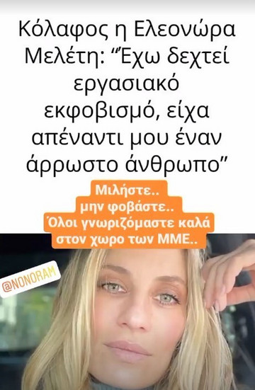 Το πρώτο μήνυμα έστειλε ο Τάσος Τεργιάκης μέσω Instagram μετά την αποκαλυπτική συνέντευξη της Ελεονώρας Μελέτη στην οποία μίλησε ανοιχτά για τον εργασιακό εκφοβισμό που δέχτηκε.