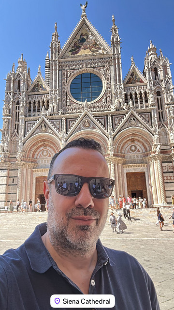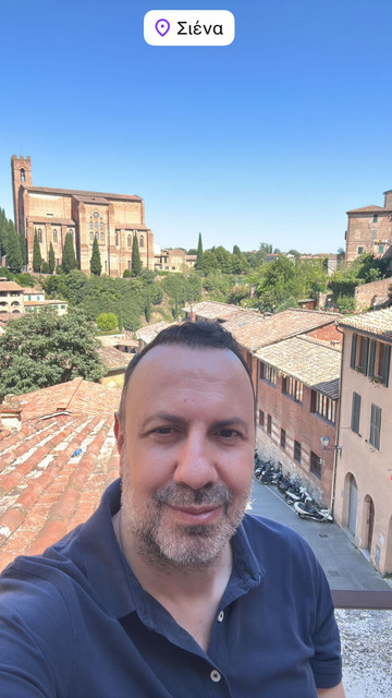 Μέσα από τον λογαριασμό του στο Instagram, μοιράστηκε με τους followers του στιγμιότυπα από τη βόλτα του στην ιστορική Piazza del Duomo, με φόντο τον εντυπωσιακό Καθεδρικό Ναό της Σιένα (Siena Cathedral), ένα από τα πιο χαρακτηριστικά δείγματα γοτθικής αρχιτεκτονικής στην Ιταλία.
