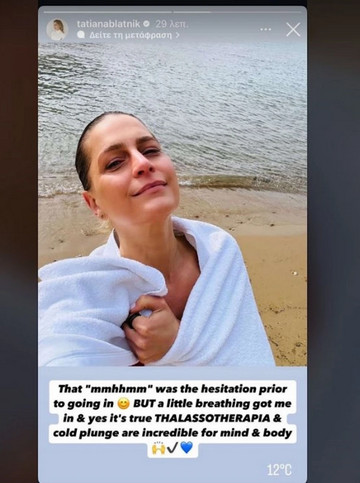 Η Τατιάνα μοιράστηκε στιγμιότυπα από την εξόρμησή της σε παραλία της Αττικής, συμπεριλαμβανομένης μιας selfie που τράβηξε μετά από μια χειμερινή βουτιά στη θάλασσα, αψηφώντας το κρύο.