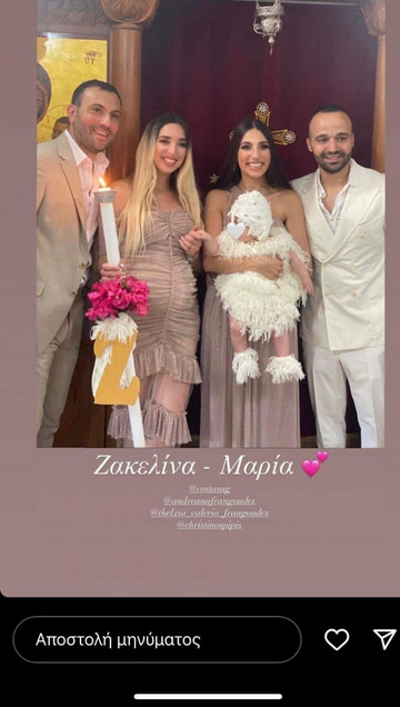 Όπως είχε γίνει ήδη γνωστό η μικρή, πήρε το όνομα Ζακελίνας – Μαρίας ενώ νονοί της ήταν η Ανδρεάνα Φραγκούδη και ο Κώστας Γεωργιάδης.