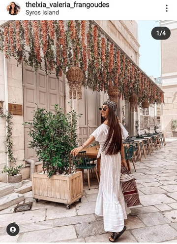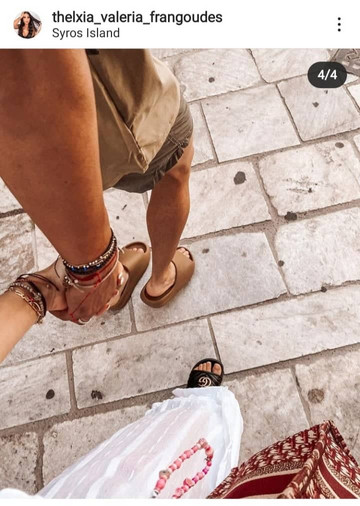 Η influencer/επιχειρηματίας στην πρώτη της δημοσίευση από το νησί, επέλεξε να φορέσει ένα ανάλαφρο top με μάξι φούστα ενώ συνδύασε το σύνολο με μαύρες παντόφλες γνωστού οίκου. Από την πλευρά του, ο Χριστίνος μοιράστηκε φωτογραφίες με τη σύζυγό του από το αεροδρόμιο αλλά και την παραλία.