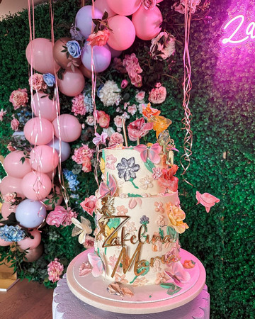 Η μικρή Ζακελίνα έσβησε τα κεράκια της διώροφης γενέθλιας τούρτας της, με τα 3D χρωματιστά λουλούδια να κάνουν τη διαφορά.