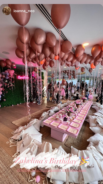 Η διακόσμηση του πάρτι ήταν ονειρική, με τα χρώματα να κυμαίνονται σε ροζ αποχρώσεις ενώ ροζ μπαλόνια υπήρχαν παντού μέσα στο χώρο. Ξεχωριστές λεπτομέρειες τα custom-made δωράκια για κάθε καλεσμένο, το led με το όνομα της Ζακελίνας στο wall αλλά και το αρχικό γράμμα ”Ζ” της εορτάζουσας που υπήρχε στο χώρο του πάρτι.