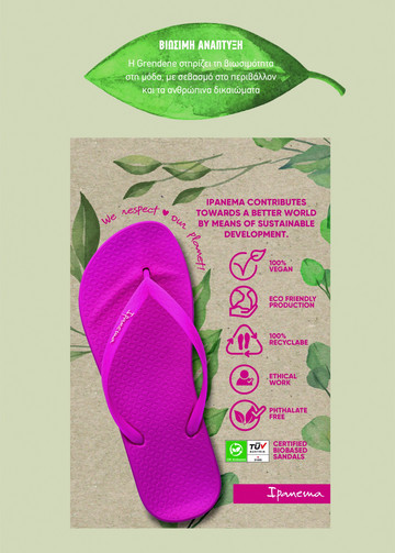 Αν είστε έτοιμες λοιπόν για βραζιλιάνικο μαύρισμα, καιρός είναι να αποκτήσετε και τις αυθεντικές βραζιλιάνικες σαγιονάρες IPANEMA. Εμπνευσμένη από την ομώνυμη φημισμένη παραλία στο Rio De Janeiro, η συλλογή IPANEMA προτείνει ιδιαίτερες σαγιονάρες για άνδρες, γυναίκες και παιδιά, με απίθανα καλοκαιρινά σχέδια και χρώματα αλλά και την λεπτομέρεια της βραζιλιάνικης σημαίας στα λουράκια, μεταφέροντας μας στην τροπική Βραζιλία με έναν μοναδικό τρόπο.