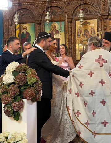 Η Αναστασία εμφανίστηκε λαμπερή, μέσα σε ένα ρομαντικό νυφικό που τράβηξε τα βλέμματα, ενώ ο Θησέας δεν έκρυβε τη συγκίνησή του.