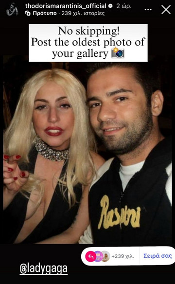 Ειδικότερα, ο Θοδωρής Μαραντίνης έλαβε μέρος σε ένα challenge του Instagram, το οποίο προτρέπει τους χρήστες της εφαρμογής να κοινοποιήσουν την ποιο παλιά φωτογραφία που έχουν στο κινητό τους. Όπως φαίνεται, η εικόνα του τραγουδιστή που πληροί αυτή την προϋπόθεση είναι από τις πιο εντυπωσιακές που θα μπορούσαν να δημοσιευτούν, αφού ο ίδιος είχε φωτογραφηθεί με την Lady Gaga.